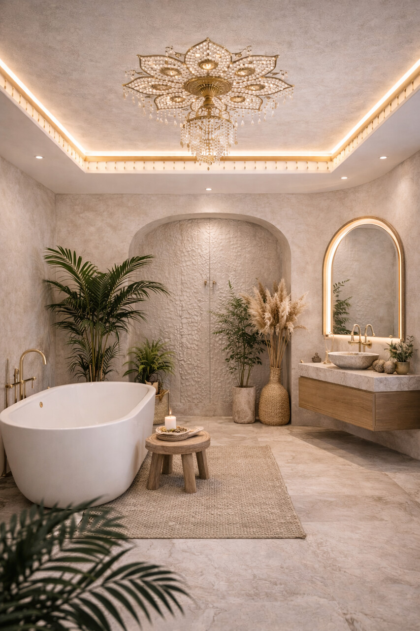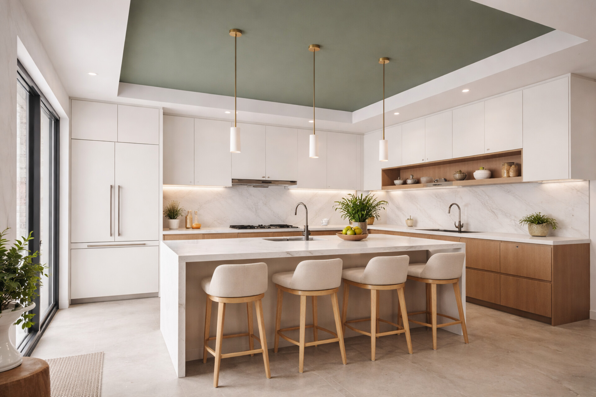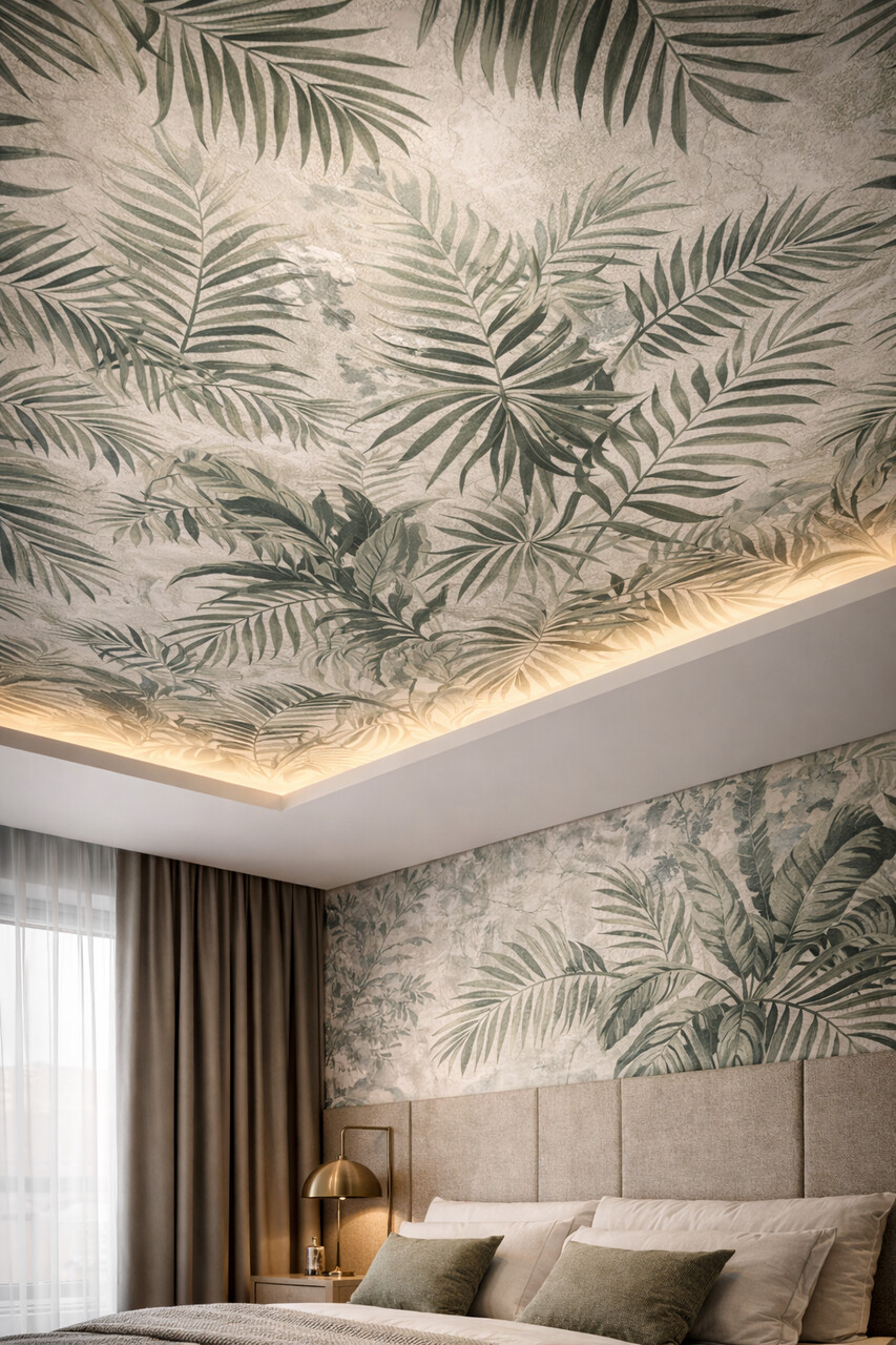 Non è solo questione di colore. Intonaci, texture leggere, boiserie, tagli di luce integrati e superfici lavorate trasformano il soffitto in elemento progettuale capace di generare profondità e ritmo.